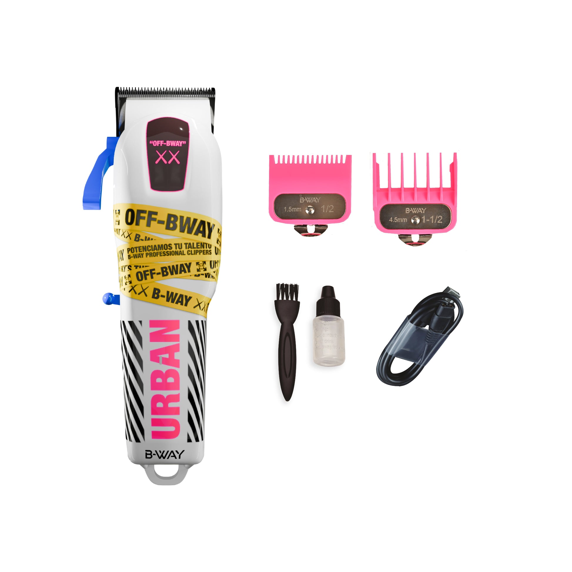 Máquina profissional sem fio para uso com e sem cabo, que inclui um cabo USB para carregamento. Atinge 7800 RPM e tem 10W de potência. Graças à sua bateria de íons de lítio de 2200mAh, você obtém até 240 pés de uso contínuo, com 3 horas de carga total. Possui lâmina Taper, e lâmina móvel micro serrilhada de cerâmica. Além disso, uma luz LED, indicador de energia. Este conjunto de 6 peças inclui: máquina de cortar cabelo profissional, 2 pentes-guia transparentes (1,5 mm / 4,5 mm), óleo lubrificante*, escova de limpeza e cabo USB.
